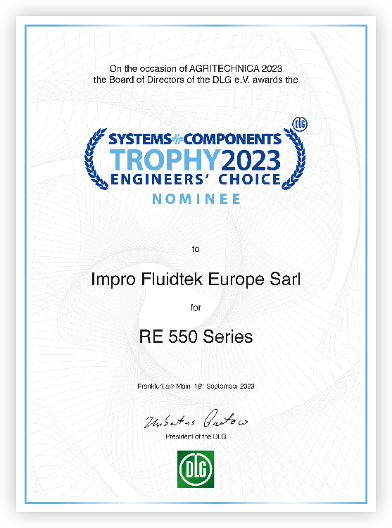 鷹普流體科技的RE 550系列擺線(xiàn)馬達(dá)被德國(guó)漢諾威農(nóng)機(jī)展AGRITECHNICA 2023主辦方提名為SYSTEMS & COMPONENTS TROPHY 2023 – ENGINEERS’ CHOICE的入圍產(chǎn)品。這一獎(jiǎng)項(xiàng)提名高度認(rèn)可了鷹普流體科技對(duì)產(chǎn)品研發(fā)和創(chuàng)新的能力及對(duì)農(nóng)林機(jī)械和相關(guān)行業(yè)的重大貢獻(xiàn)。