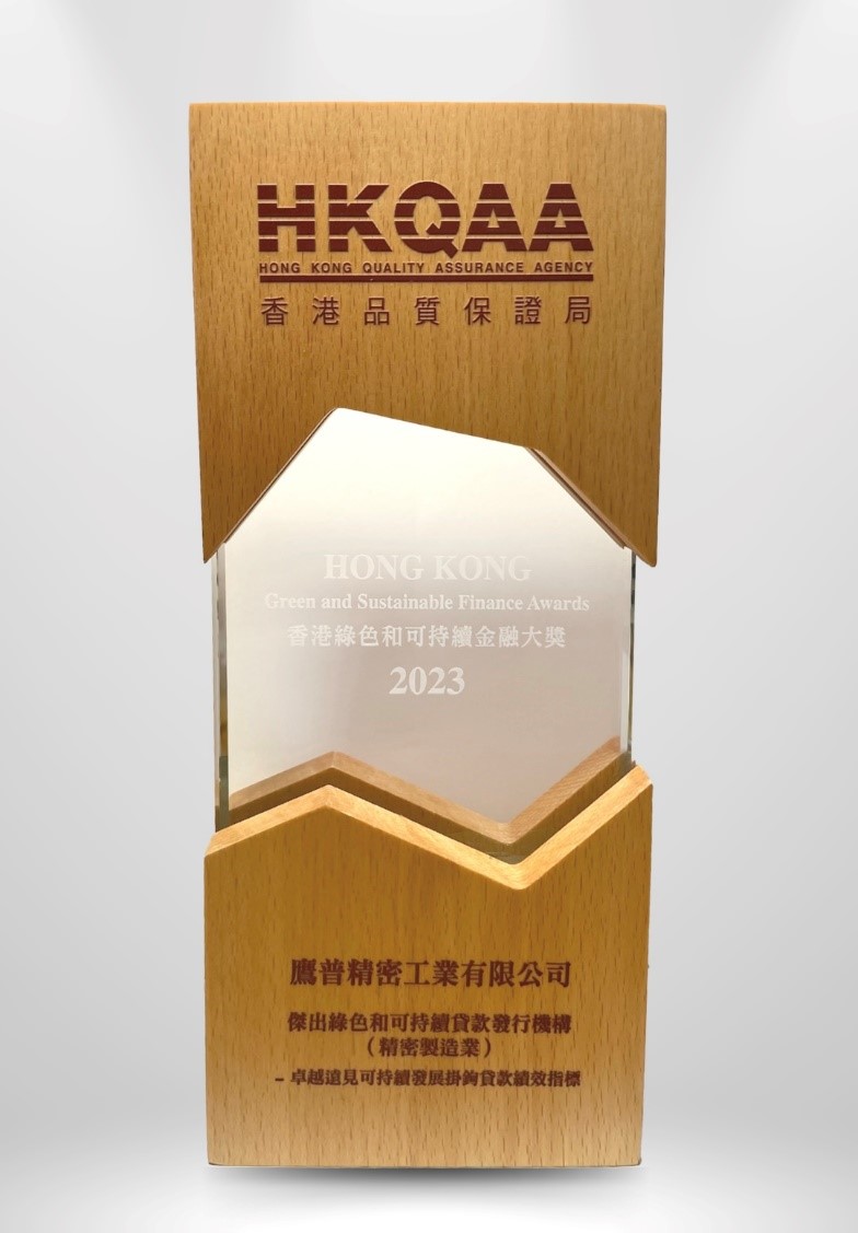 鷹普榮獲香港綠色和可持續(xù)金融大奬 2023「杰出綠色和可持續(xù)貸款發(fā)行機構(gòu)(精密制造業(yè))-卓越遠見可持續(xù)發(fā)展掛鉤貸款績效指標」